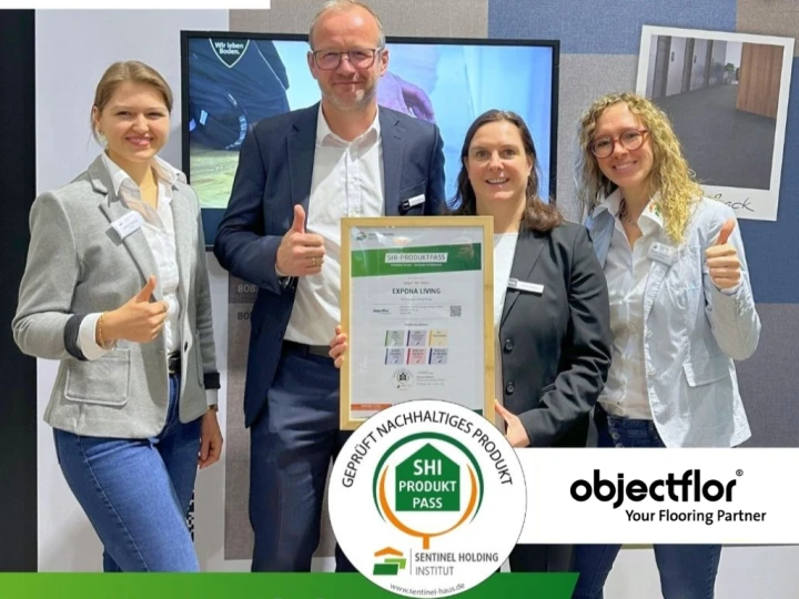 At the BAU 2025 trade fair in Munich, the SHI product passport certification for EXPONA LIVING was officially presented to objectflor. This not only transparently documents the flooring's sustainability performance, but also reflects it in the DGNB Navigator – a valuable tool for architects, planners and auditors.